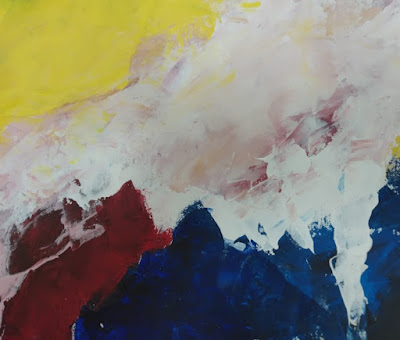 Abstractions inspirées par les tableaux de Sally Gabory à la Fondation Cartier. Il n'y a pas la dimension culturelle et spirituelle qu'elle y a apportée, mais simplement le plaisir de la gestuelle, alla prima, la matière et la couleur et du grand format.